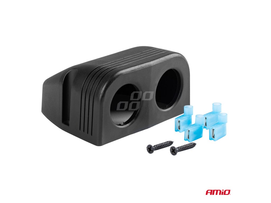 Kryt pre povrchovú montáž s 2 x 30 mm otvormi pre prídavné zariadenia. Je možné namontovať kruhový voltmeter, USB nabíjačky alebo zásuvku zapaľovača.