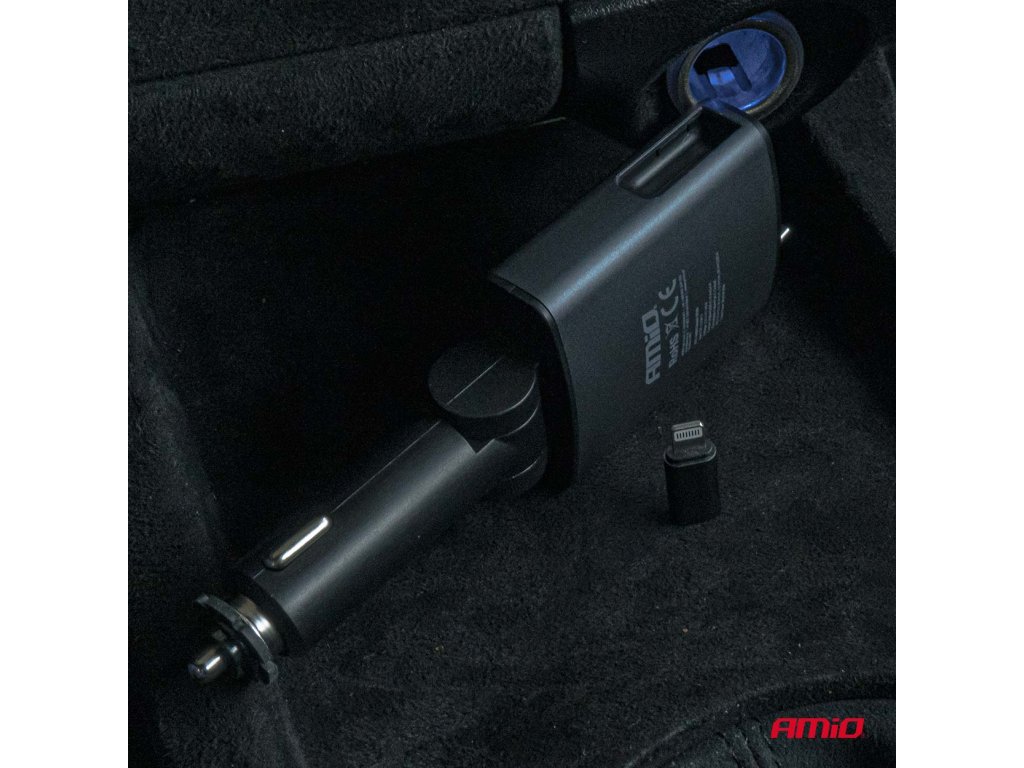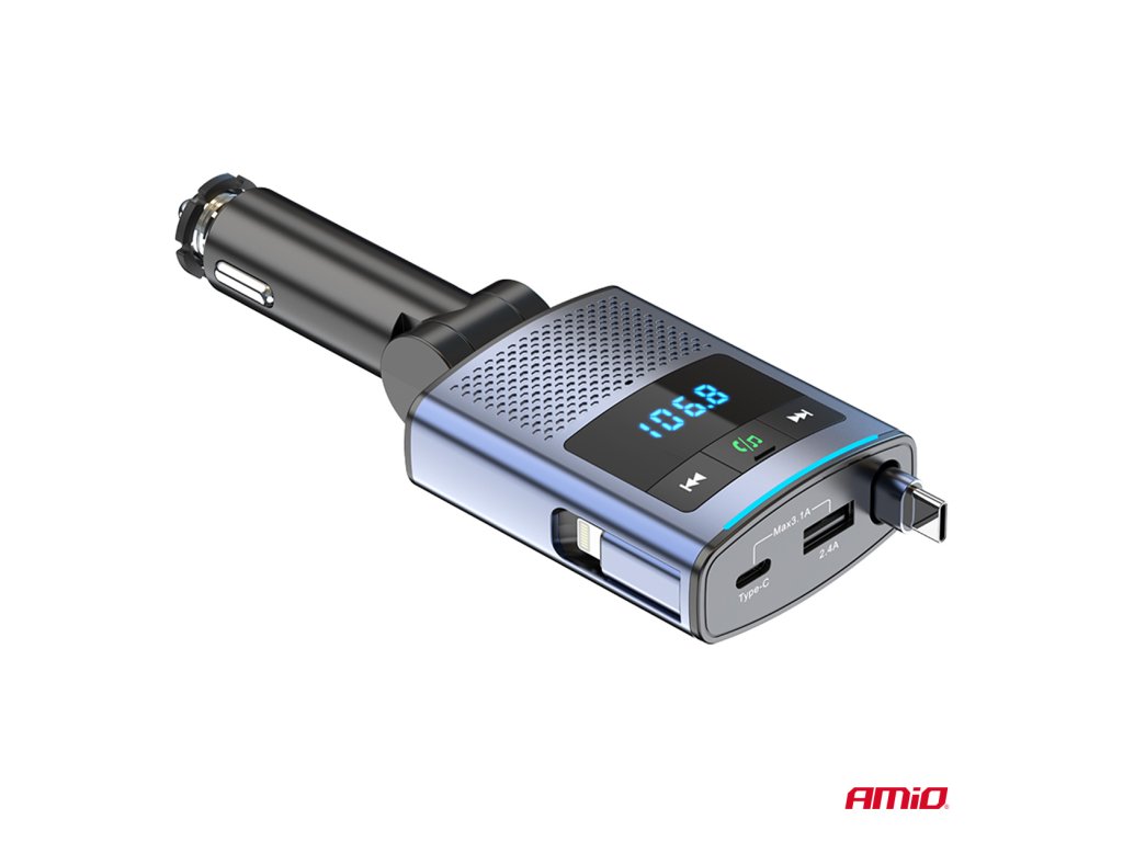FM transmitter 1×USB-A 1×USB-C 12/24V AMiO-04656