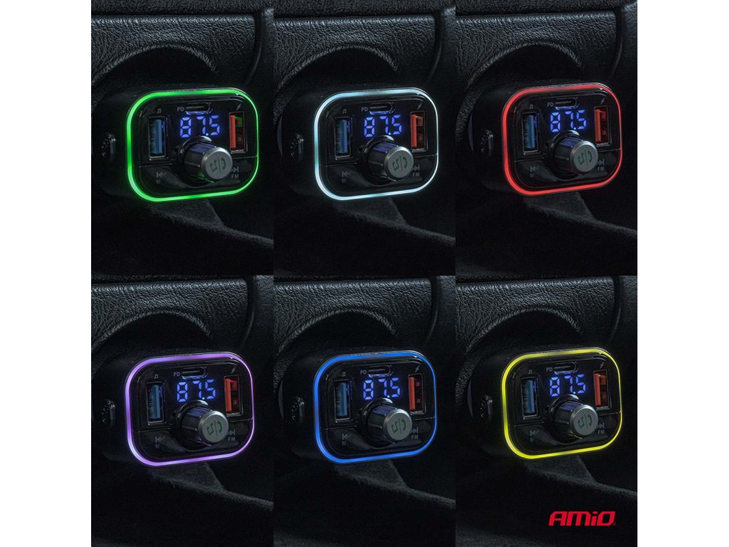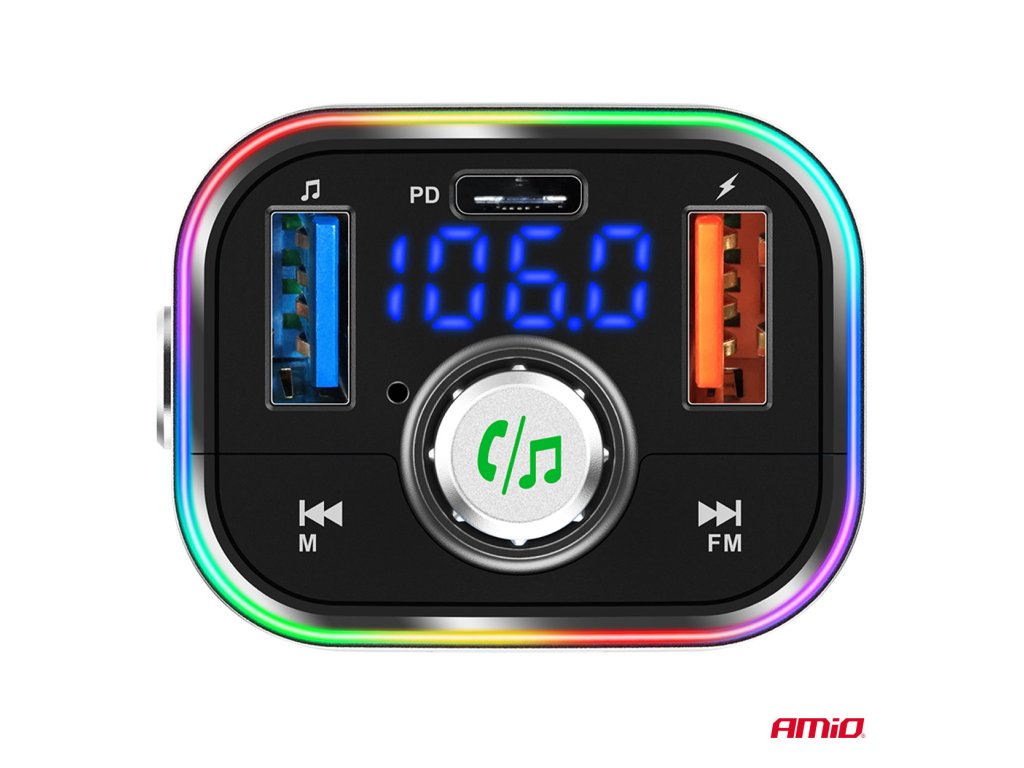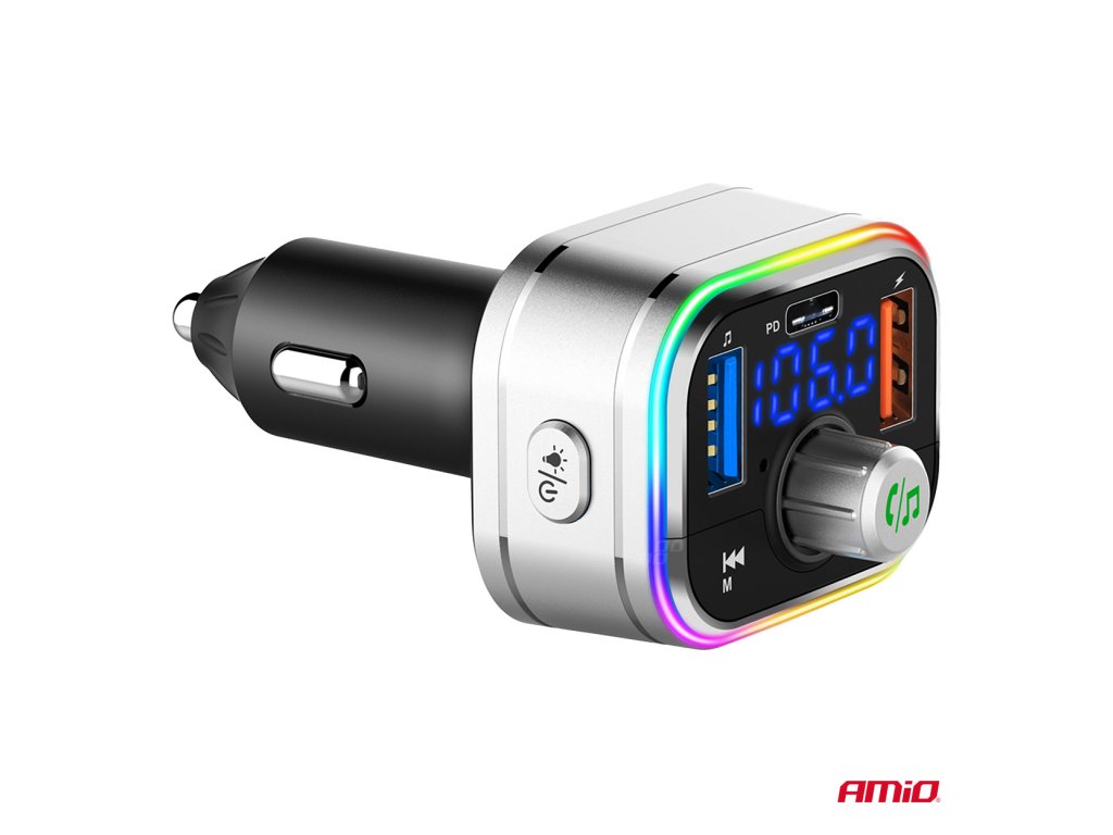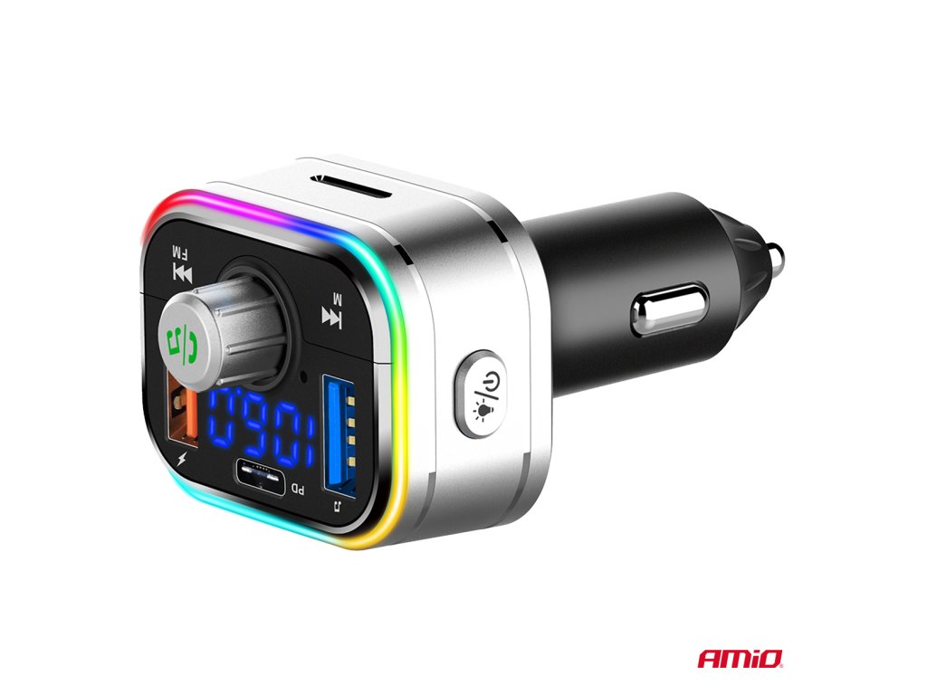 FM transmitter 1×USB-C microSD 12V 24V AMiO-04652