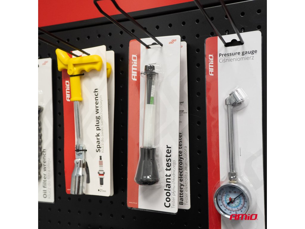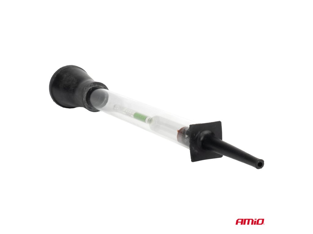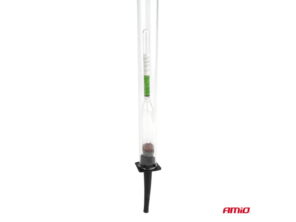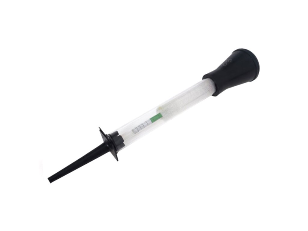 Hustomer prevádzkových kvapalín. Sklenený hustomer s balónikom, nasávaciu trubicou a vnútorným plavákom, určený na meranie náplne chladiča automobilu. Pomocou tohto hustomeru možno merať kvapaliny na báze glykolu aj chladiacej kvapaliny na báze metanolu. Meranie stavu kvapaliny sa vykoná nasatím chladiacej kvapaliny do sklenenej trubice. Odpočítaním hodnôt na plaváku možno zistiť teplotu (v stupňoch Celzia), pri ktorej meraná kvapalina zamŕza.