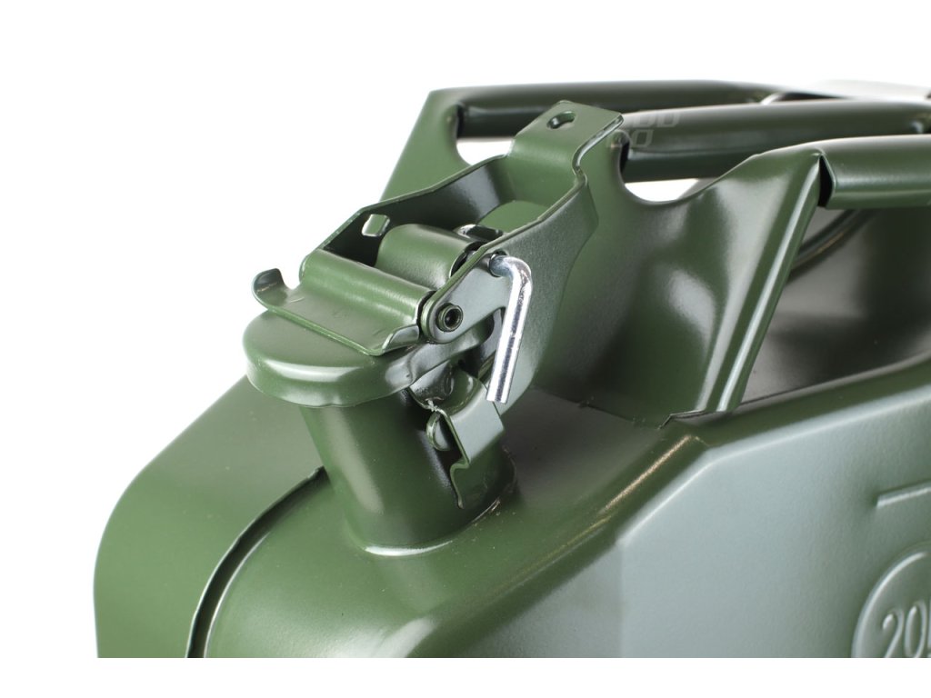 Kovový kanister určená na prepravu a skladovanie rôznych druhov tekutín. Vyrobené z oceľového plechu s práškovým nástrekom na oboch stranách, vďaka čomu je vysoko odolné voči korózii a poveternostným vplyvom. Pevné spracovanie zaručuje aj vysokú odolnosť proti mechanickému poškodeniu. Sada obsahuje pozinkovaný kolík v tvare L pre dodatočnú bezpečnosť a ochranu pred deťmi. Kanister je certifikovaný UN, čo umožňuje bezpečné skladovanie všetkých palív vrátane benzínu a nafty. Výrobok je vybavený tesnením umiestneným pod uzáverom. Tesnenie zaručuje tesnosť nádoby.