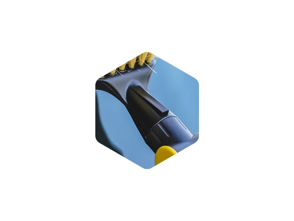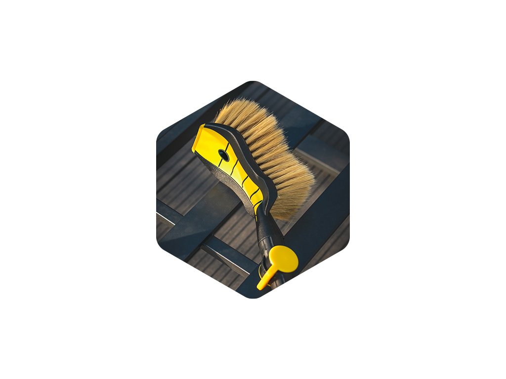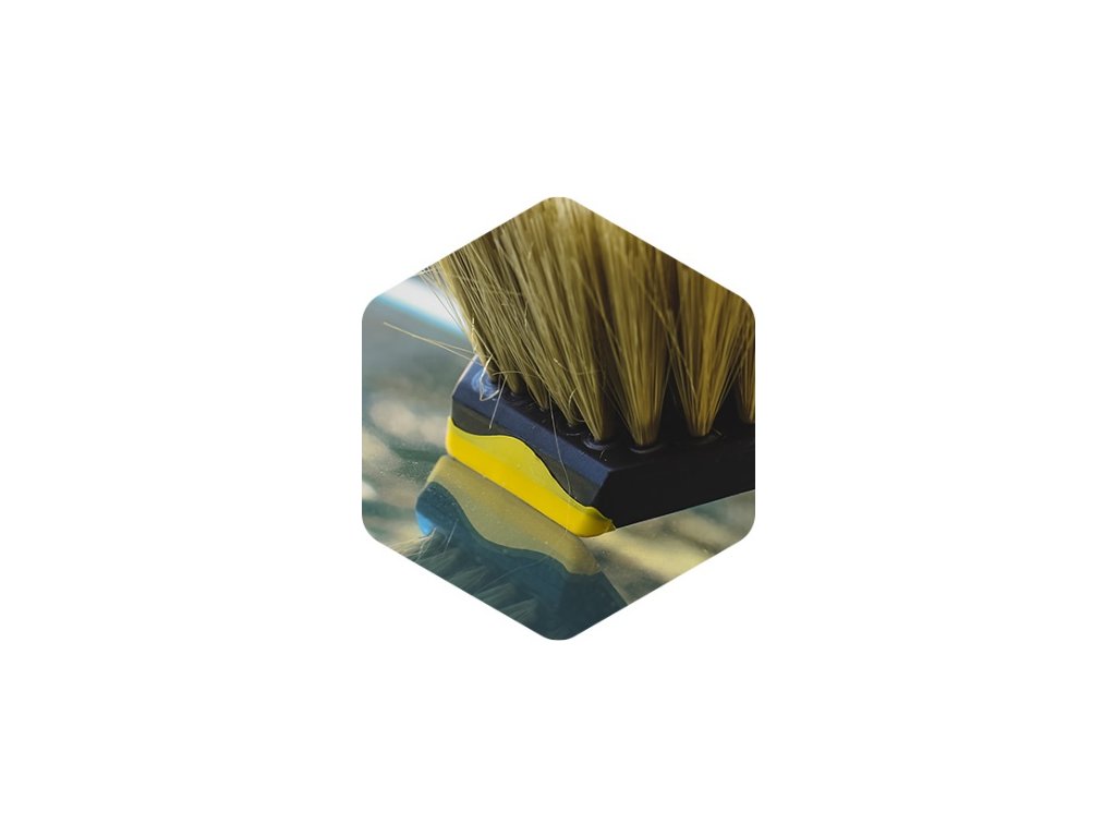 Husté, měkké, odolné, správně zapuštěné polyesterové štětiny účinně odstraňují nečistoty bez poškrábání povrchu.