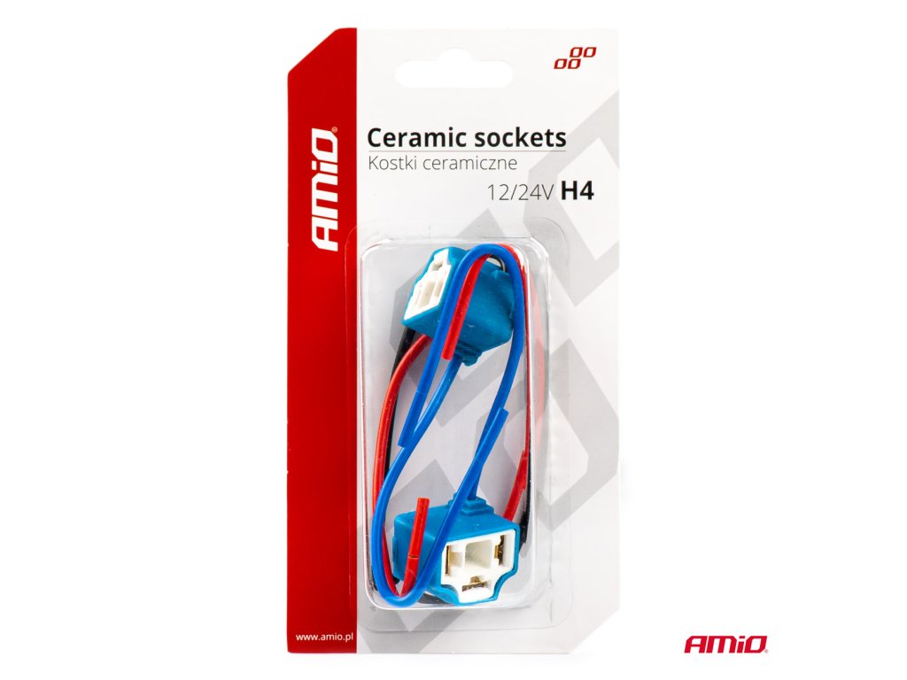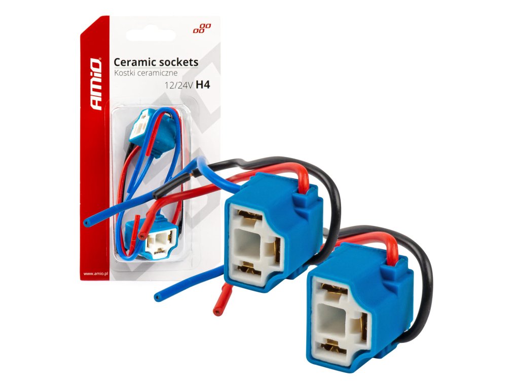 - Koncovka je vyrobená z keramického materiálu, ktorý je odolný voči vysokým teplotám. Má pevný izolačný kryt. Montážne bloky s vodičmi pre halogénové žiarovky H4 (pre vozidlá s napájaním 12/24V).