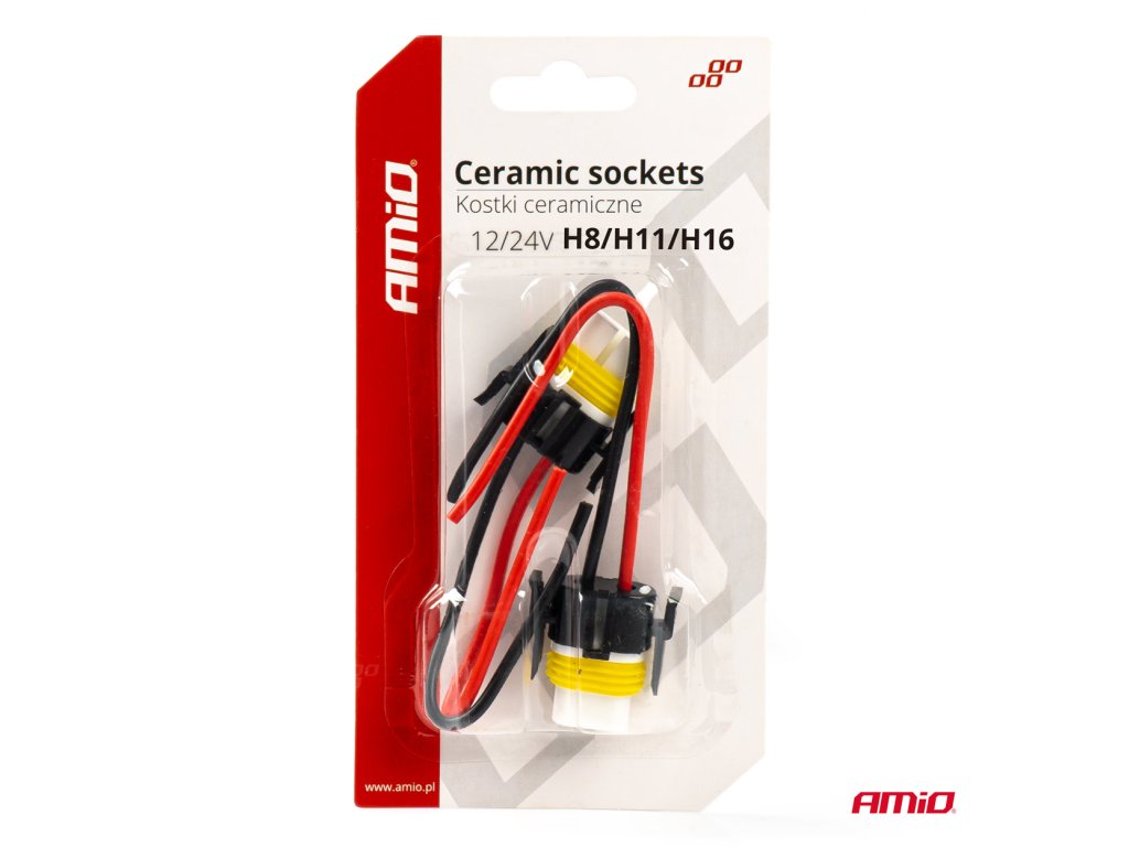 - Koncovka je vyrobená z keramického materiálu, ktorý je odolný voči vysokým teplotám. Má pevný izolačný kryt. Montážne bloky s vodičmi pre halogénové žiarovky H8/H11/H16 (pre vozidlá s napájaním 12/24V).