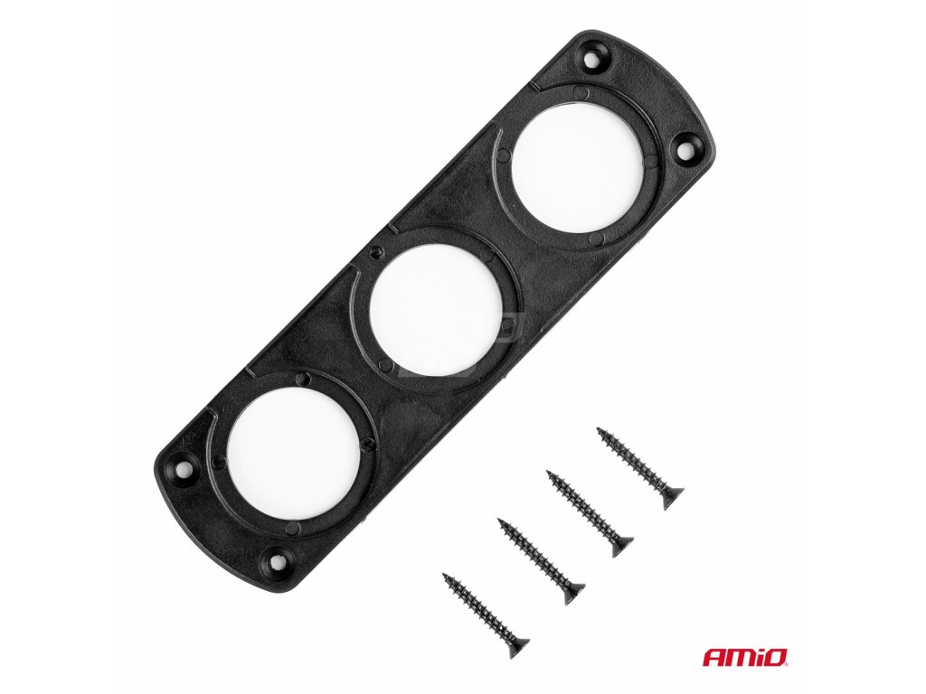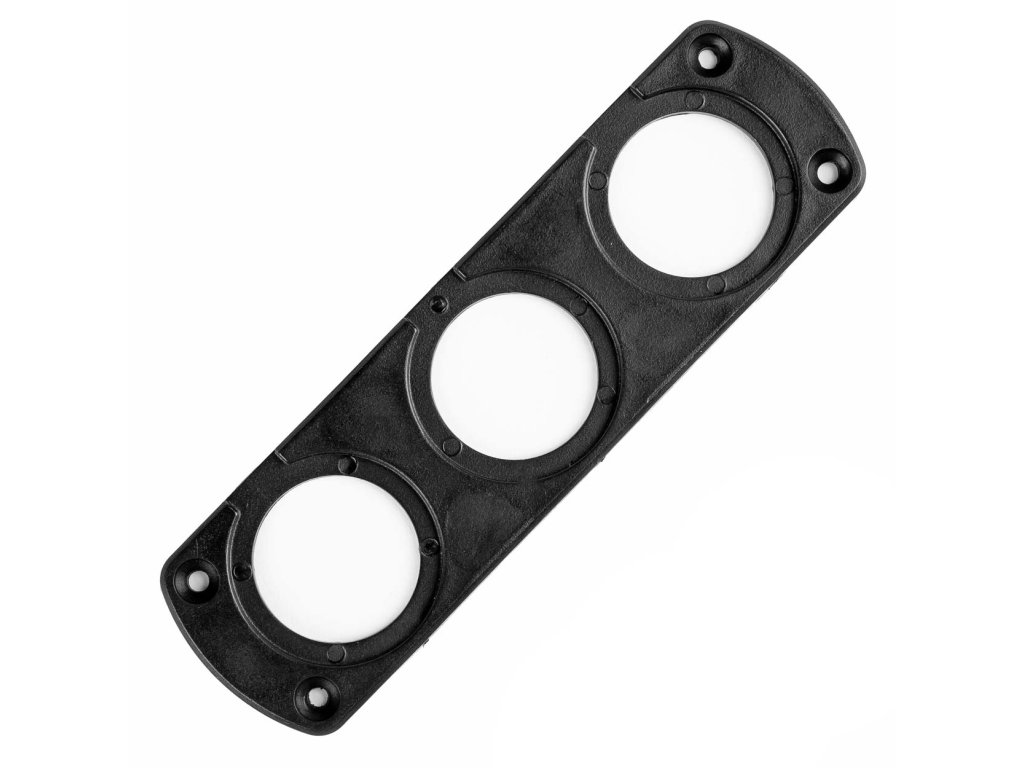 Plochý kryt s klenutými stranami pre montáž kruhového voltmetra, USB nabíjačky alebo zásuvky zapaľovača. Rám umožňuje montáž 3 komponentov súčasne.