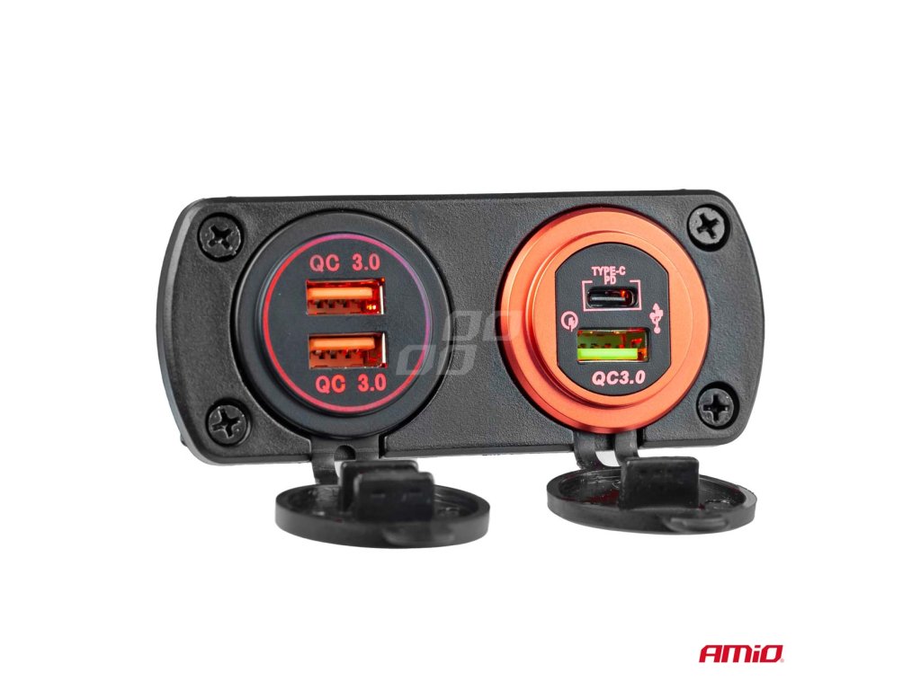 Vodotesná nabíjačka MOD-11 s testerom napätia 2xUSB 12/24V