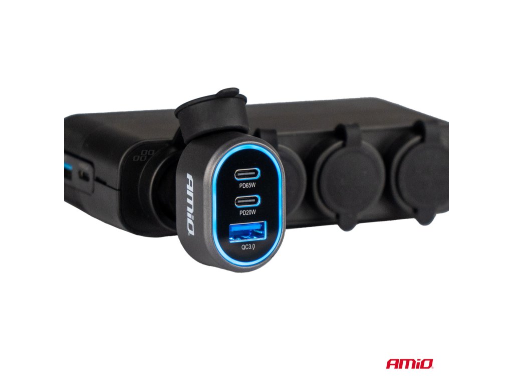 Táto rýchla autonabíjačka je dokonalým riešením pre tých, ktorí potrebujú multifunkčný a výkonný nabíjací nástroj na cestách. Vďaka dvom portom USB-C (PD65W a PD20W) a portu USB-A s technológiou Quick Charge 3.0 môžete súčasne nabíjať niekoľko zariadení - od smartfónov a tabletov až po notebooky a ďalšie gadgety s vyššími energetickými nárokmi. Vďaka kompaktnému a štýlovému dizajnu nabíjačka dokonale zapadne do zásuvky zapaľovača cigariet, čím zaistí pohodlie a poriadok v aute. Celkový výkon 85W.
