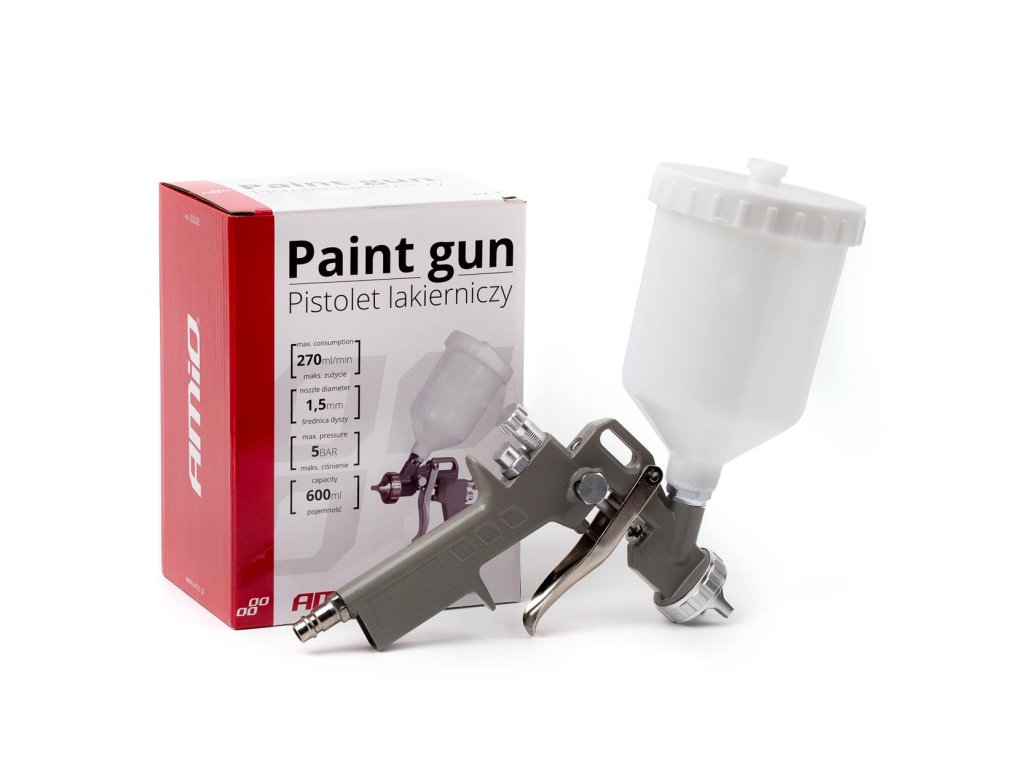 Pištoľ má nastaviteľné množstvo laku a tvar prúdu farby - laku.