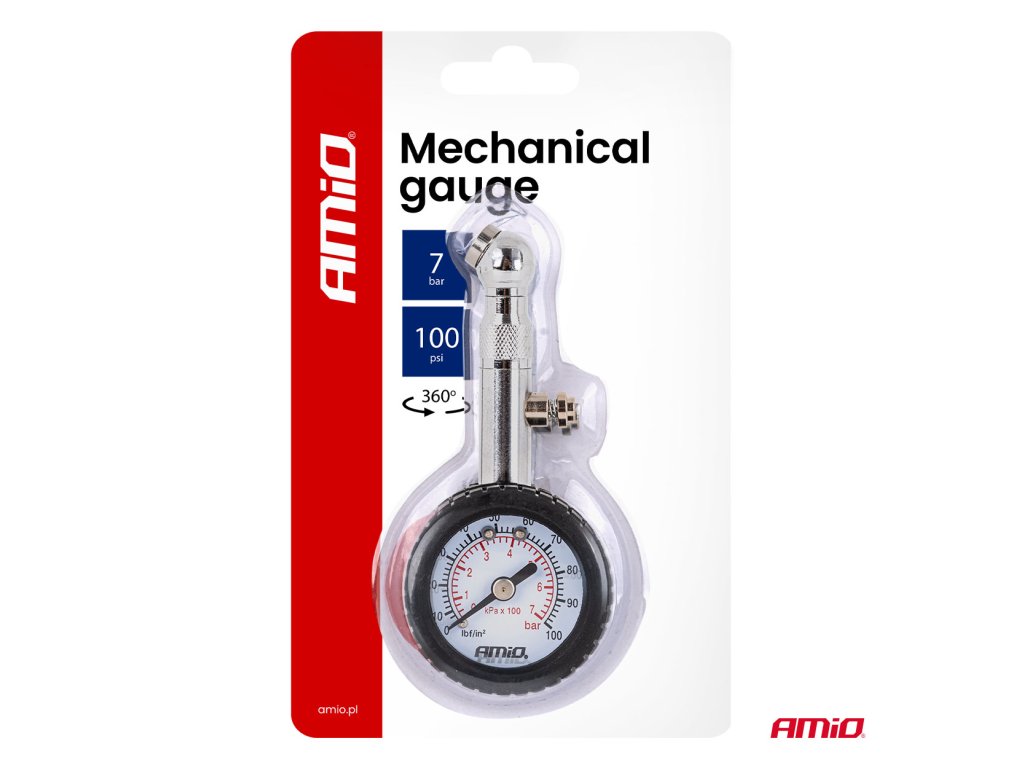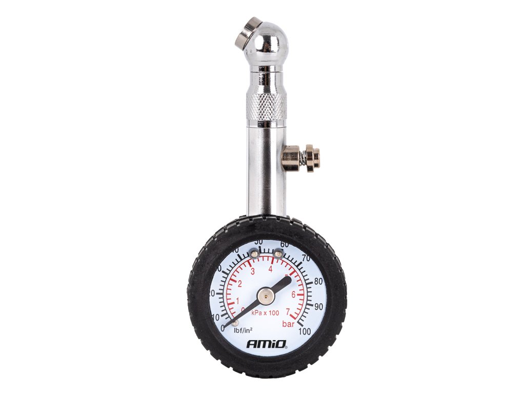 Pneumerač s otočnou hlavicou a ventilom na vynulovanie je kompaktný a funkčný nástroj na kontrolu tlaku v pneumatikách. Merací rozsah do 7 barov umožňuje presné merania pri osobných a ľahkých úžitkových vozidlách. Pohyblivá hlavica uľahčuje prístup k ventilom aj v ťažko dostupných pozíciách a vypúšťací ventil umožňuje rýchle zníženie tlaku bez potreby odstránenia prístroja. Analógová stupnica zaručuje spoľahlivosť a nevyžaduje napájanie.