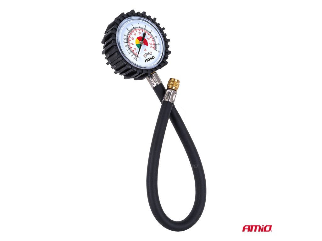 Pneumerač s pružnou hadicou dĺžky 30 cm a rozsahom do 12 barov je praktický a odolný nástroj určený na kontrolu tlaku v pneumatikách. Pneumerač s prehľadným ciferníkom zaručuje jednoduché používanie bez potreby napájania. Pružná hadica uľahčuje meranie v ťažko prístupných miestach, čo zvyšuje komfort práce v dielni.