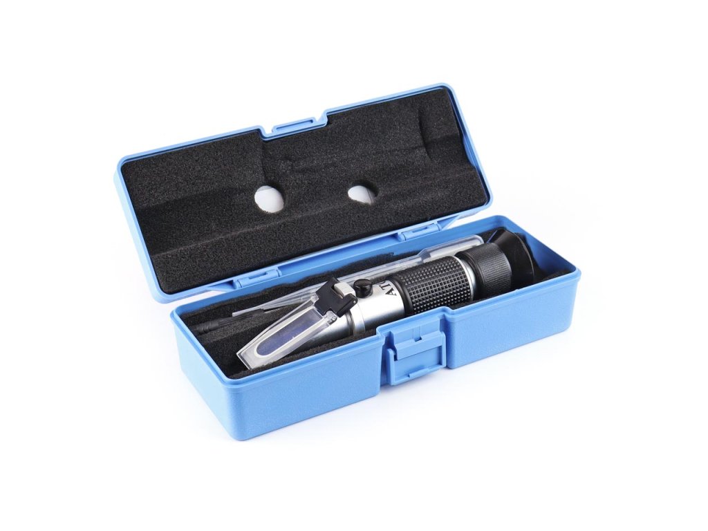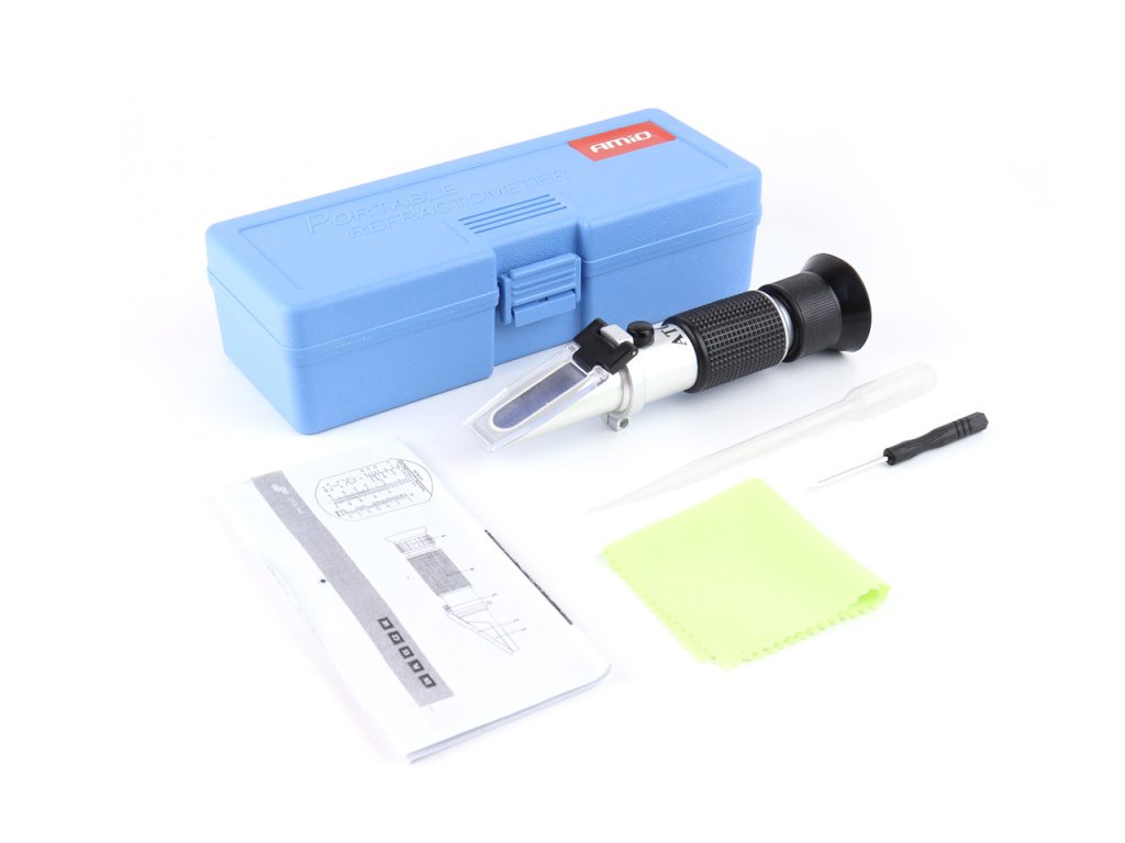 Profesionálny refraktometer na meranie prevádzkových kvapalín automobilov, nákladných vozidiel a autobusov. Je určený na určenie bodu mrazu kvapaliny do ostrekovačov čelného skla, chladiacej kvapaliny propylénglykolu a etyllykolu. Poskytuje tiež rozsah hustoty elektrolytu. Súprava obsahuje vzorkovaciu pipetu a čistiacu handričku. Všetko zabalené v praktickej krabici.