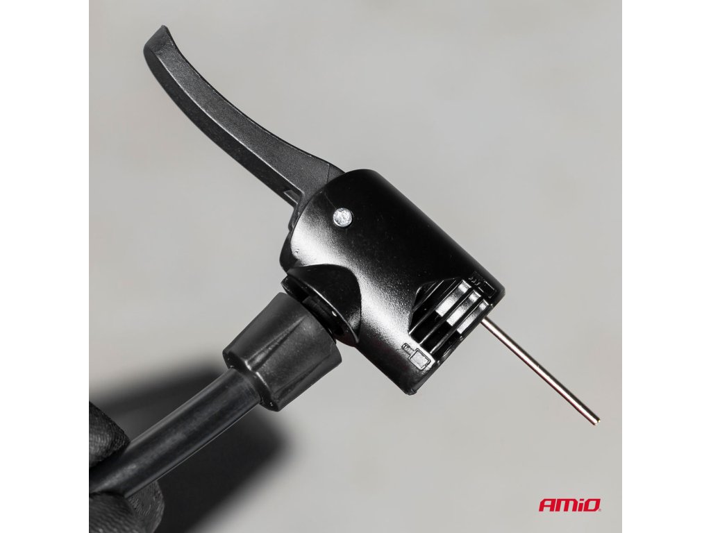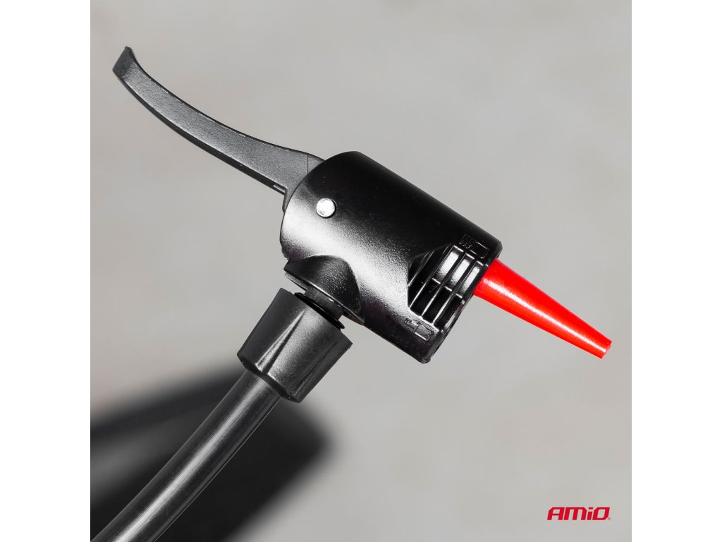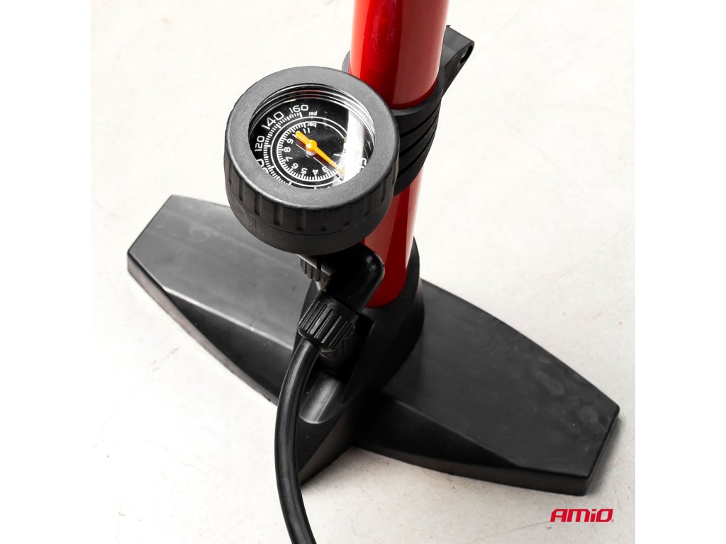 Robustná ručná hustilka s maximálnym tlakom 11 BAR / 160 PSI. Má dvojitú univerzálnu hlavu pre ventily automobilov a bicyklov. Okrem toho sú súčasťou súpravy adaptér a ihla na nafúknutie matracov, lôpt, nafukovacích hračiek atď. - vyrobené z hliníka a odolného plastu - tlakomer nastavený na 11 BAR / 160 PSI - pevná základňa uľahčuje držanie pumpy nohami - 65 cm dlhý kábel - výška čerpadla: 62 cm - základné rozmery: 13x24,5 cmDodatočné parametre