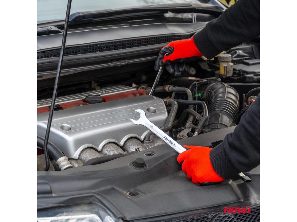 - Dvojitá funkčnosť: Kombinácia vidlicového a očkového kľúča zaisťuje všestrannosť a jednoduché použitie.