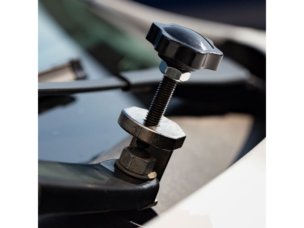 Princíp činnosti: tvarované čeľuste zachytávajú ramienko stierača, pomocou skrutky sa ramienko vysúva z objímky.