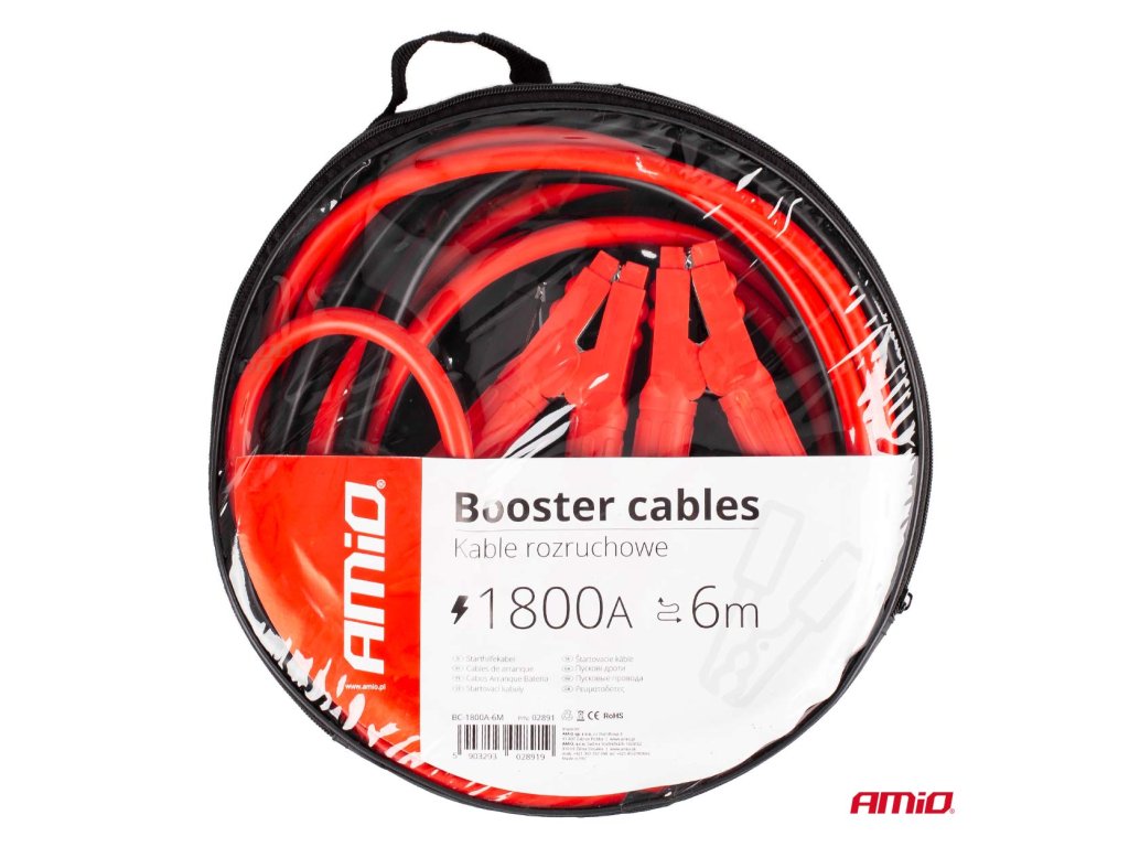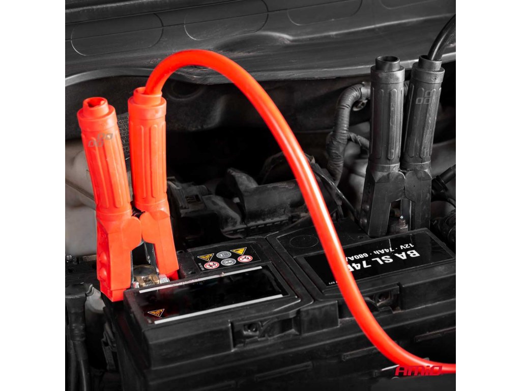 Sada hrubých a pevných štartovacích káblov s dĺžkou 2 x 6 metrov - s odporom do 1800A. Hrubý zväzok medi obsiahnutý pod gumovým plášťom kábla zaisťuje spoľahlivé a maximálne vedenie prúdu.