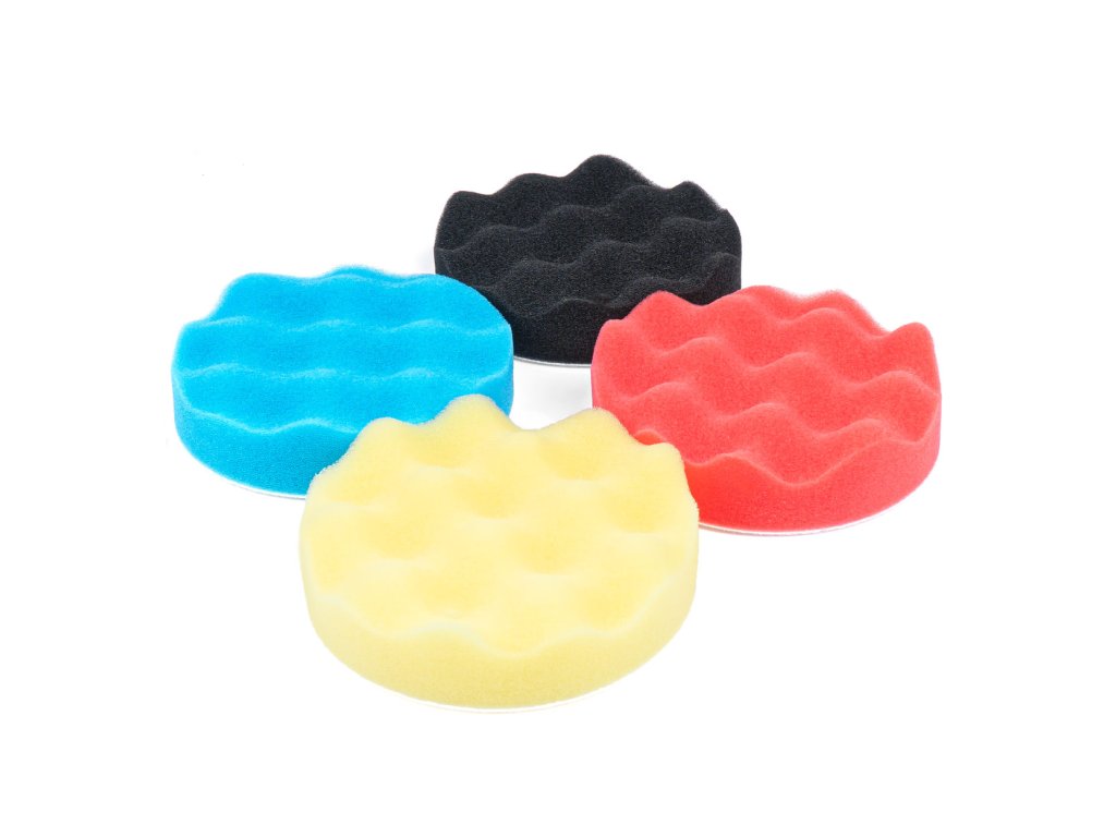 INCLUDES: waffle working face 1PC x 125mm blue waffle pad, 1PC x 125mm red waffle foam pad 1PC x 125mm yello