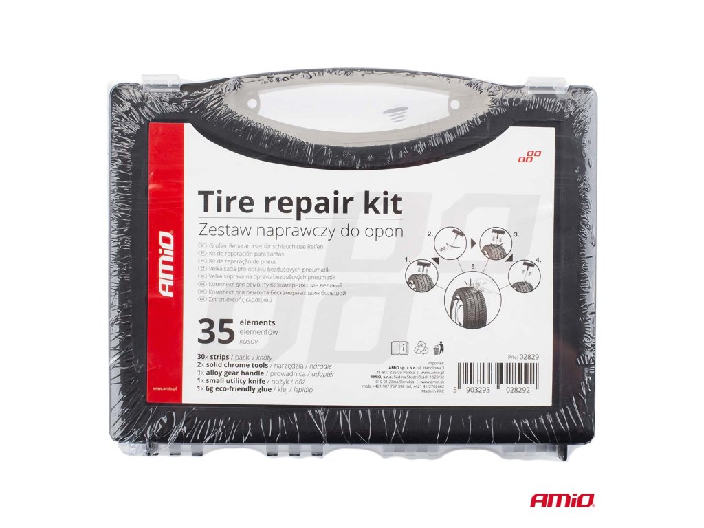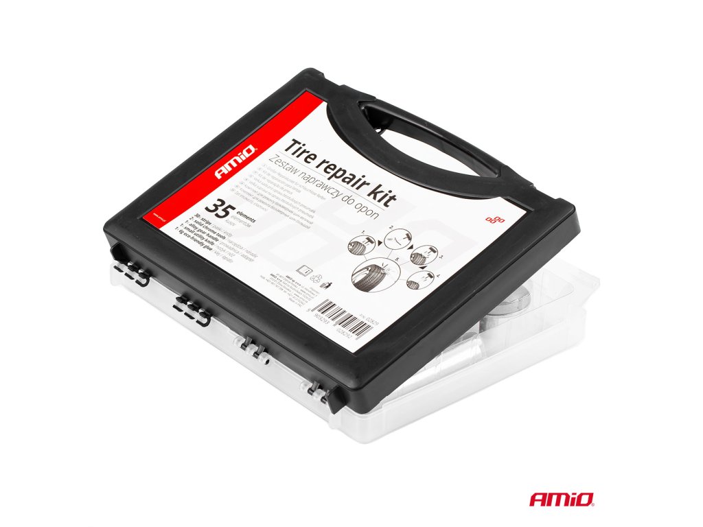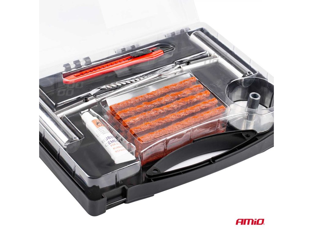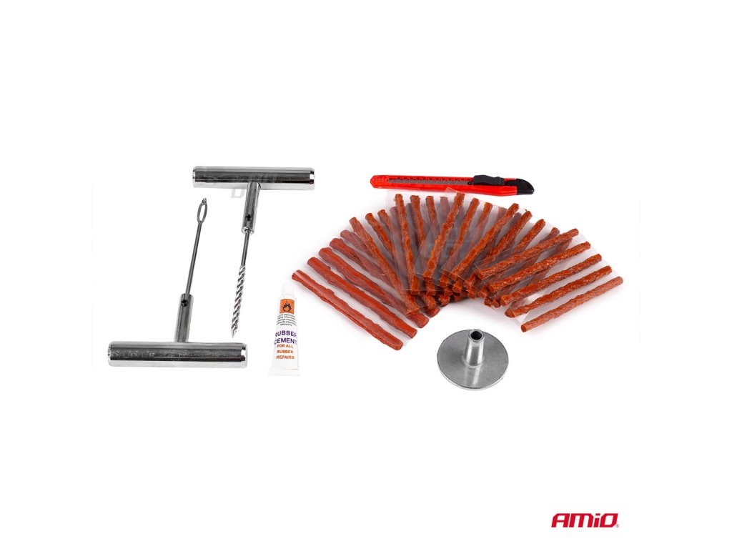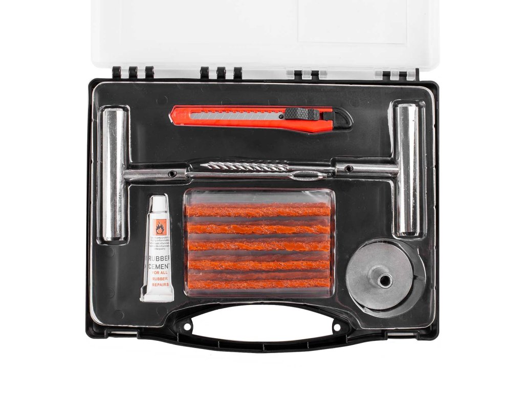 Súprava na rýchlu opravu bezdušových pneumatík bez nutnosti demontáže plášťa z disku. Táto sada je vhodná ako pre automobily, tak pre motocykle, štvorkolky a ďalšie bezdušové pneumatiky. Návod na použitie: 1. Nájdite miesto, kde je pneumatika prepichnutá a odstráňte predmet, ktorý spôsobil porušenie (ak je ešte v pneumatike). 2. Do otvoru zasuňte šidlo / vrták, a následne ho preťahujte smerom hore a dolu - do doby než bude ľahko prechádzať otvorom - týmto je otvor vyčistený a pripravený. 3. Knôt zbavený ochrannej fólie prevlečte otvorom vidlice a naneste na neho vulkanizačný roztok. 4. Zastrčte vydlicu s nasadeným knôtom do otvoru tak, aby jeho polovica zostala z vonkajšej strany pneu, potom otočte vydlicou o 1/4 a pomaly ju vytiahnite. 5. Odrežte zvyšok knôtu čo najbližšie k pneumatike. Upozornenie: Túto súpravu možno použiť len na opravy behúňa pneumatiky. Nemožno požiť na opravy bočníc pneumatiky. Obsah balenia: šidlo (vrták) vydlica na knôt 3x opravný knôt vulkanizačný roztok (12g)Dodatočné parametre