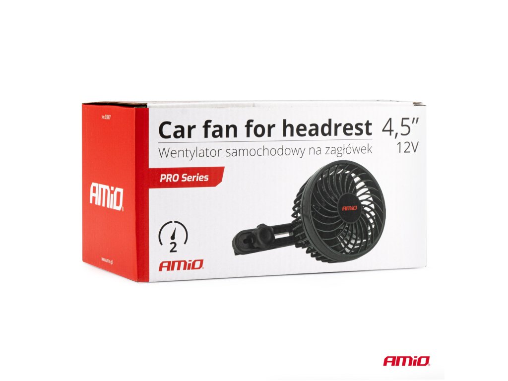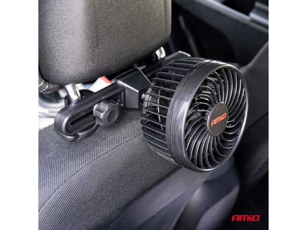 VENTILÁTOR DO AUTA AMiO NAPÁJANÝ Z 12V ZAPAĽOVAČA A MONTOVANÉHO NA OPIERKU HLAVY