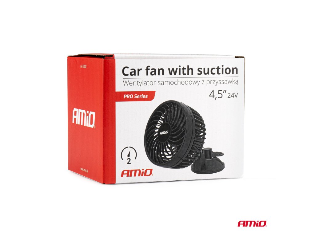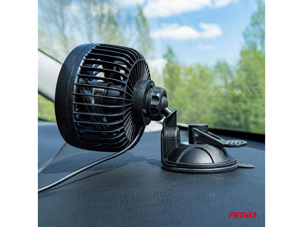 VENTILÁTOR DO AUTA AMiO NAPÁJANÝ Z 24V ZAPAĽOVAČA, NAMONTOVANÝ NA PRÍSAVKU